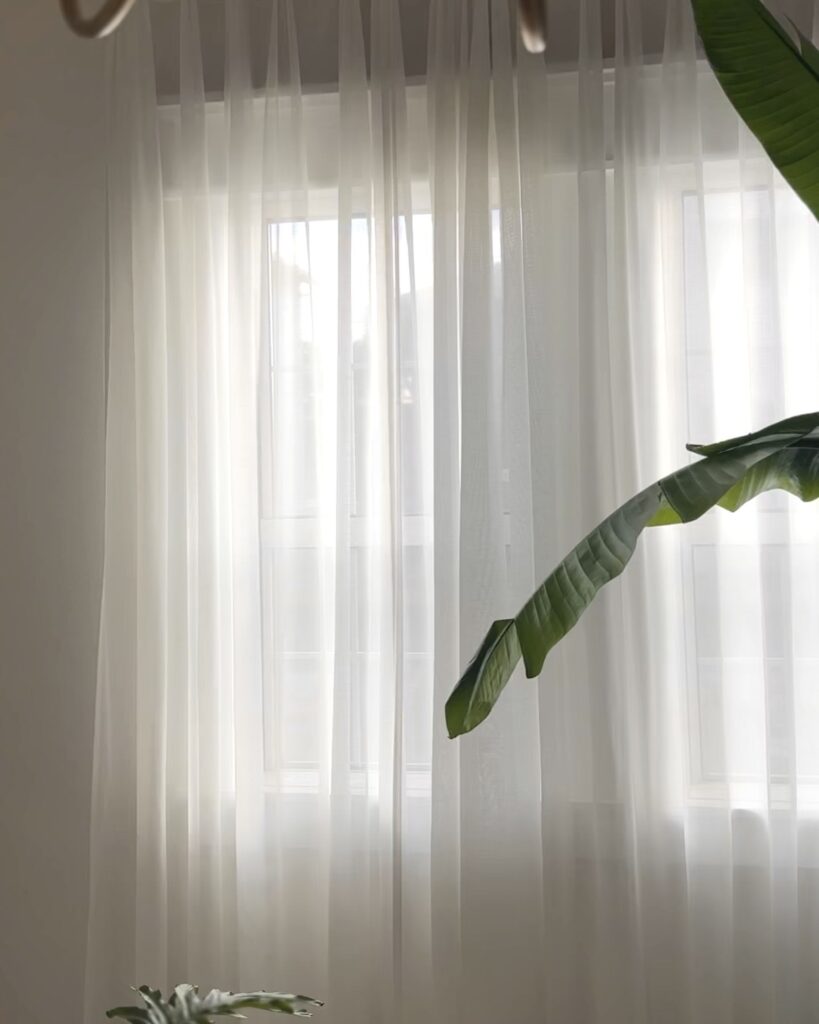 リビングは透け感のあるIKEAのヒリアをつけていました。